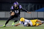 Cascade Christian running back Bryson Walker (2) breaks loose for a 44-yard touchdown on the first drive of the game against Gervais in their Class 3A state semifinal playoff game Saturday at Cottage Grove High School. The Challengers won 36-0.