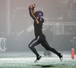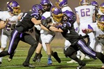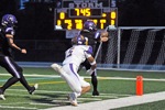 Cascade Christian's Alex Fiannaca (left) and Seth Scaglione (11) celebrate after Fiannaca scored a touchdown on a 20-yard pass from Deryk Farmer with 4:38 left in the third quarter during the Class 3A football state championship game on Saturday night at Summit High School in Bend. The Challengers defeated Burns 35-28 to win the state title and Fiannaca was named the Challengers' player of the game.