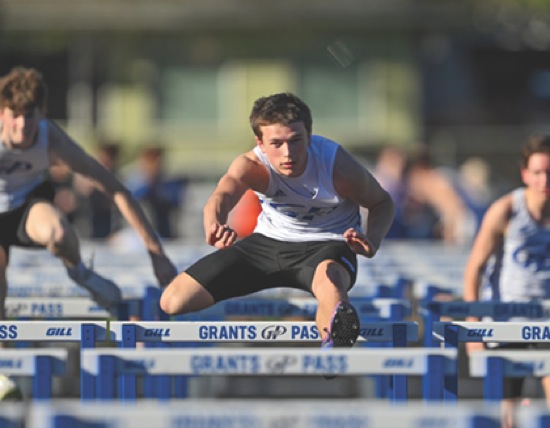 GP's Bronx Ely wins Boys 110 High Hurdles photos By: Joel Takarsh