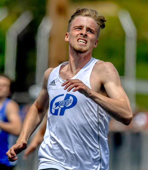 Photo by JOEL TAKARSH/for The Daily Courier PIC #0747 GP's Ethan Moe (sp?) Not sure...Men's 400M OR Men's 100M