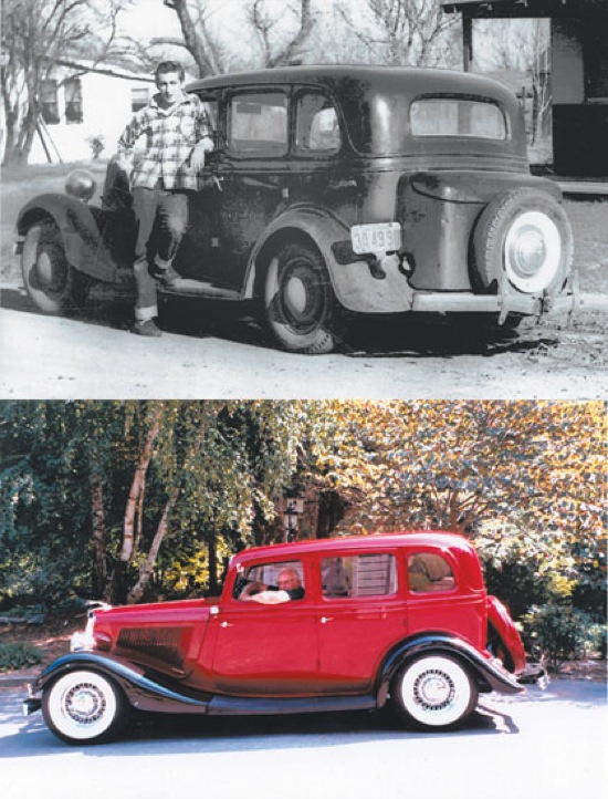 My father bought our family car, a 1934 Ford Sedan in 1939. I still have the sales contract. My family made several trips to Missouri before World War II was over. My father was drafted in 1945 just as the war was ending. My mother didn't drive, so I got my license at 12 years old, the last year before the age limit changed in California. My dad sold me the old Ford and I drove it through four years of high school, then sold it for $50. I found the car in 2010... a basket case! I restored the car and we are both going strong at 83 years of age.