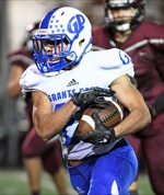 Grants Pass quarterback Blain Hobbs turns the corner and heads for the end zone, scampering for a third-quarter touchdown that gave the Cavemen a 20-12 lead.